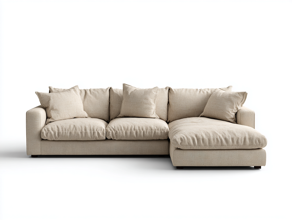 La configuration en angle permet d'optimiser l'espace du salon. Les coussins d'assise et de dossier offrent un soutien équilibré, adapté à un confort prolongé.